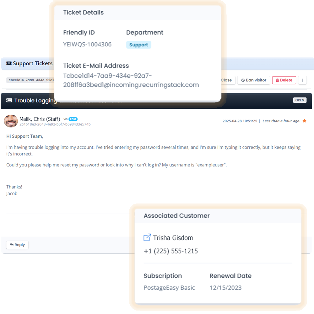 RecurringStack™ provides a built-in support ticketing system, allowing you to manage customer inquiries and issues directly within the platform. Provide exceptional support and keep all customer interactions organized in one place.