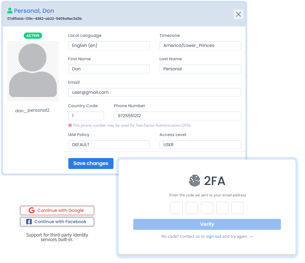 - Two-Factor Authentication (2FA) via E-Mail or SMS